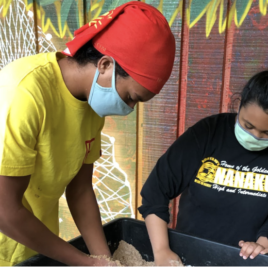 This Nānākuli High and Intermediate School team developed a composting program that engages and educates the community in food systems thinking and community sustainability. It also provides solutions that empower individuals and businesses to capture organic waste and retain it as a community resource. They built bokashi composting bins to distribute to local families, conducted bokashi workshops to teach ʻohana (family) and businesses how to make bokashi, empowering them to make their own. They continue expanding their work through their non-profit Hānai Kaiāulu.